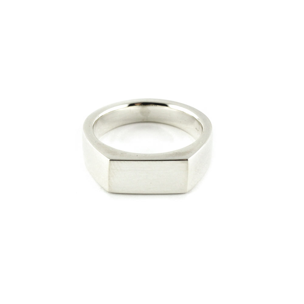 Rectangle ring made of solid 925 Sterling Silver with a BACKYARD engraving on the inside. Top measuring 14×7 mm. Polished finish. Also available in solid 9k Gold or 18k Gold. All our jewels are completely gender neutral. Crafted in Turin, Italy.
